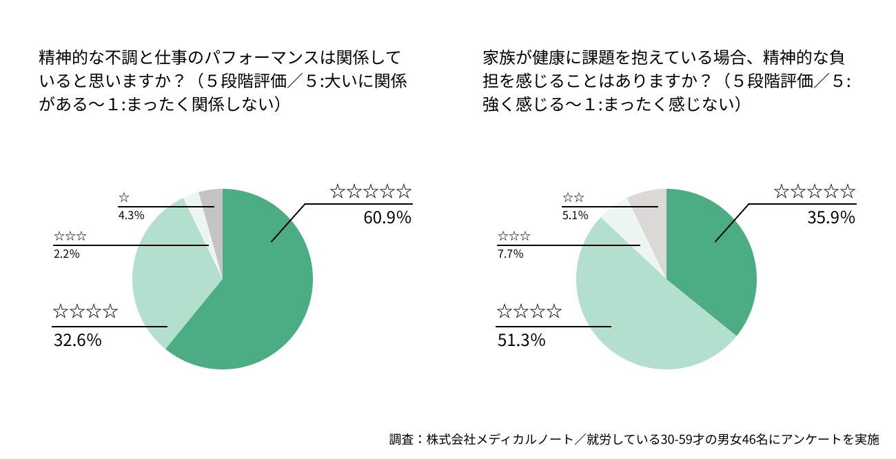 メディカルノートの調査で、約74%の人が「家族が健康に課題を抱えている場合、精神的な負担を感じる」と回答したことから、一部の機能を導入企業の従業員に限らず、その家族まで対象としています。