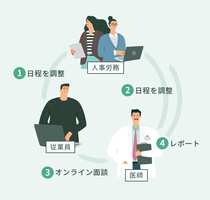 メンタルに課題を抱える社員に対して、医師がオンラインでカウンセリングを行います。またメンタルに課題を抱える社員の対応に悩む人事労務のスタッフに対しても医師が面談を行いアドバイスを行います。