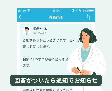 スマホやPCから、24時間・365日健康に関する疑問などを医師に相談できます。24時間以内を目安に専門医を中心とした医療チームが回答。質問は匿名かつチャット形式なので、プライバシーを気にせず利用できます。